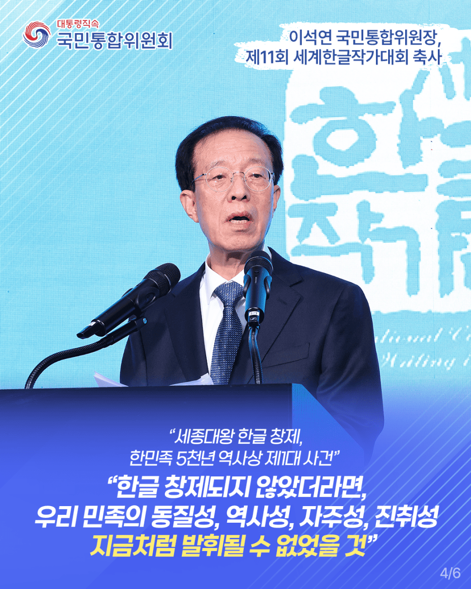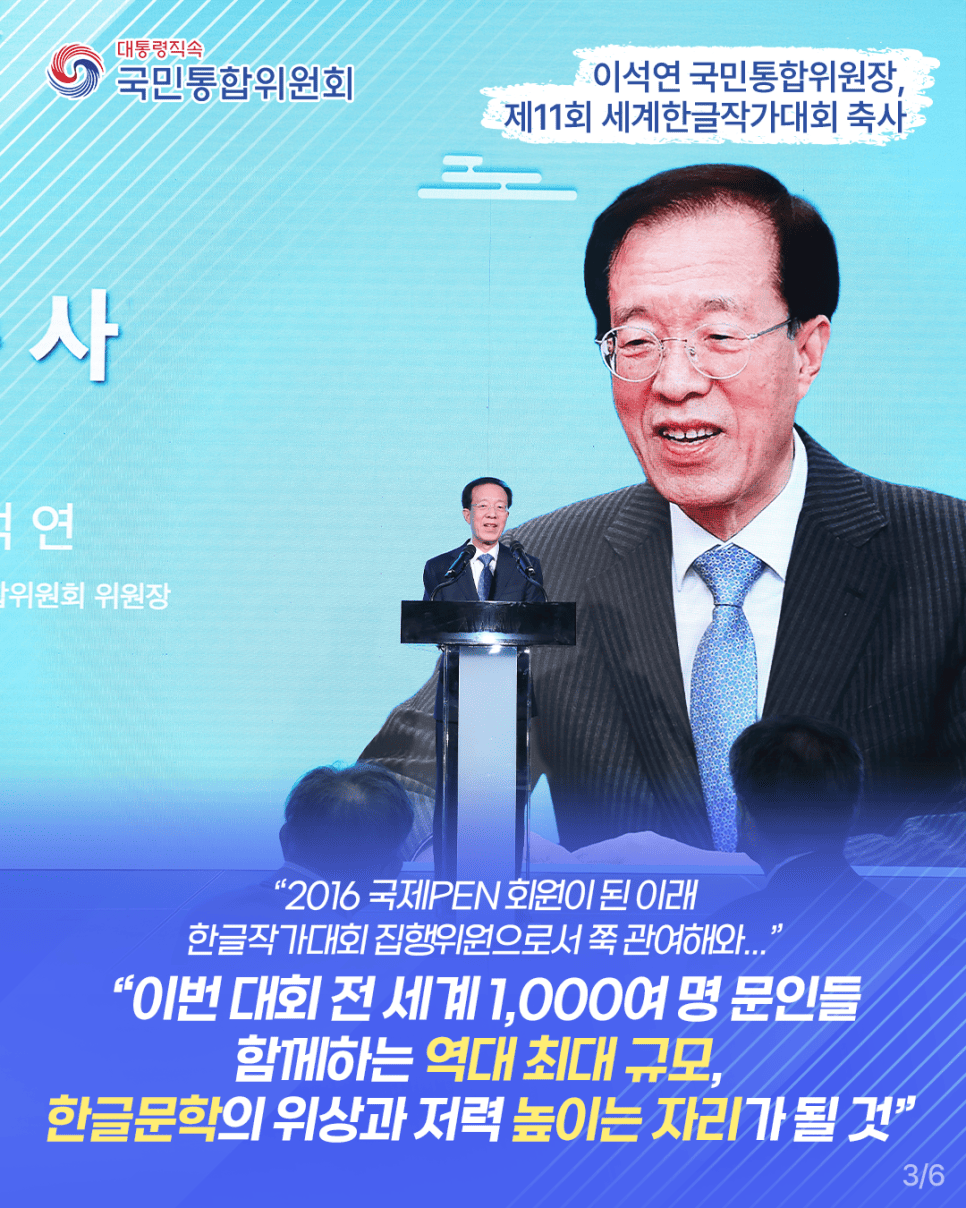 이석연 위원장, 제11회 세계한글작가대회 축사