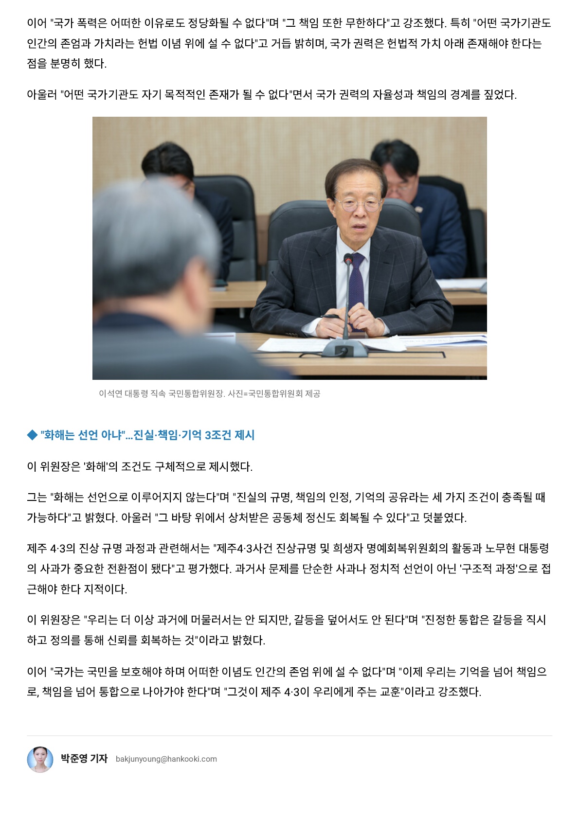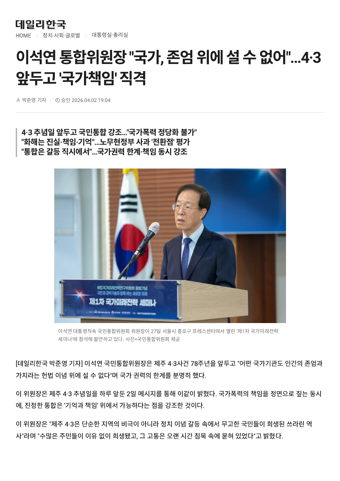 제주 4·3 사건 78주년 맞이하여 국민통합위원장으로서 드리는 말씀