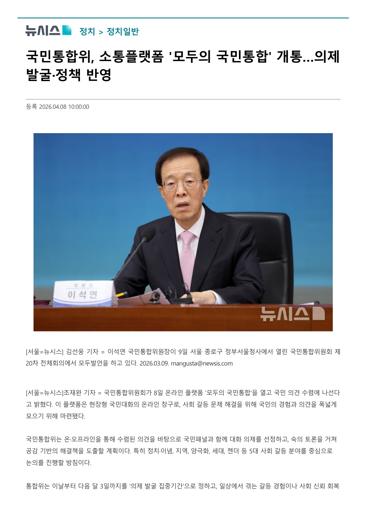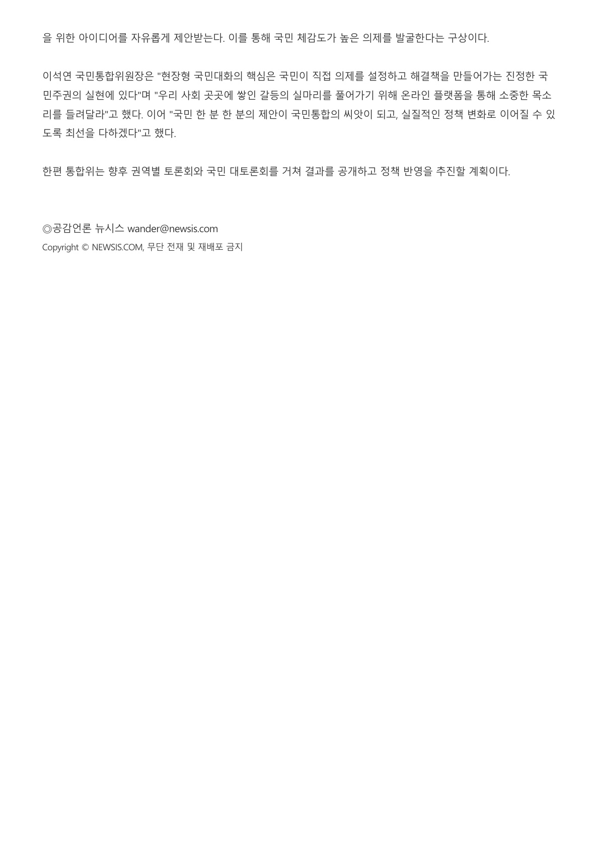 국민통합위 '오픈마이크'로 시민 소통..."현장 목소리 정책 연결"