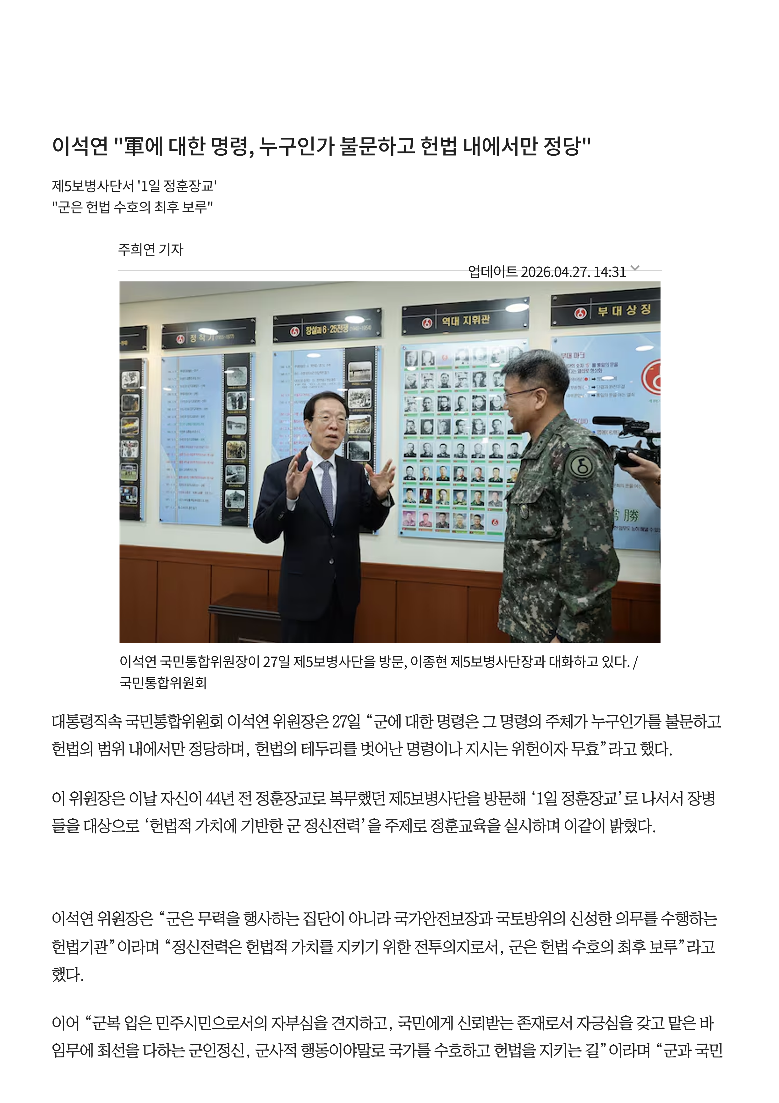 이석연 “軍에 대한 명령, 누구인가 불문하고 헌법 내에서만 정당”