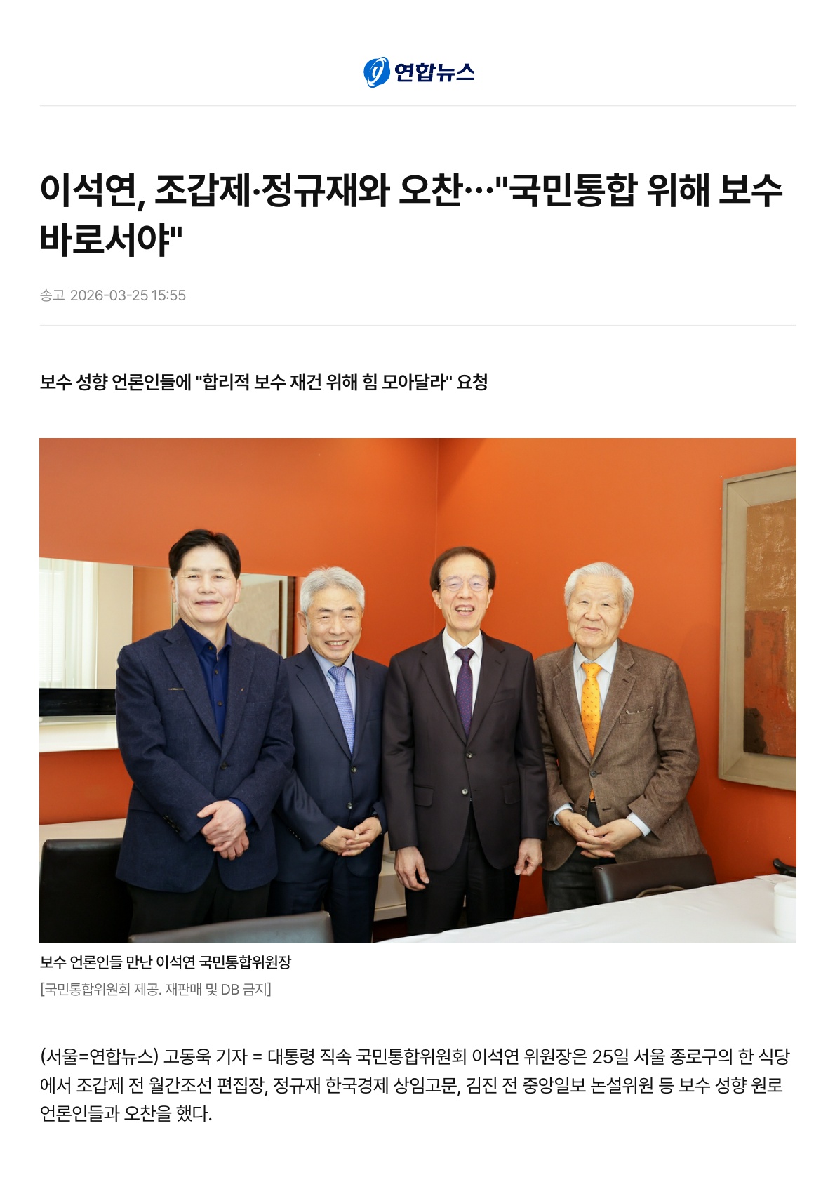 국민통합위원회, 보수 성향 원로 언론인 간담회