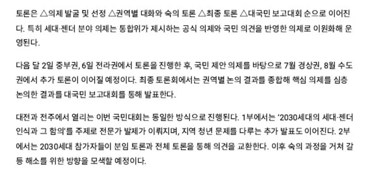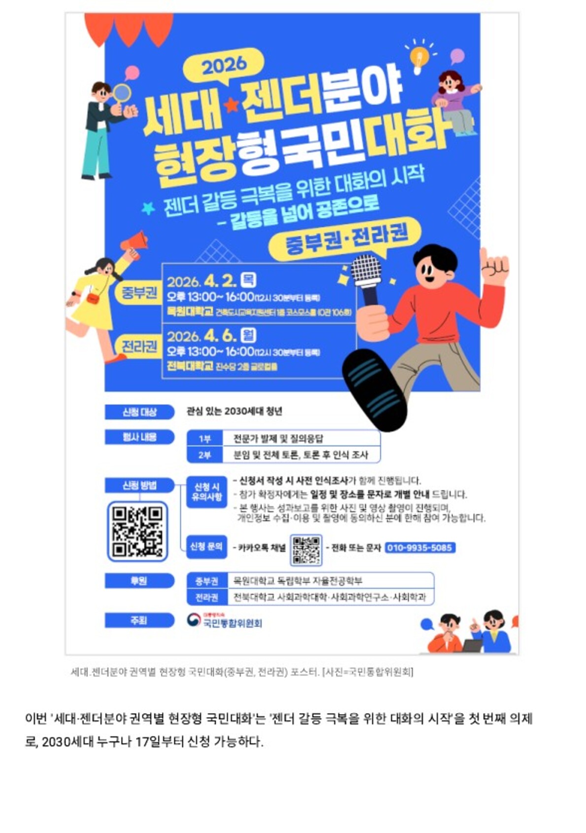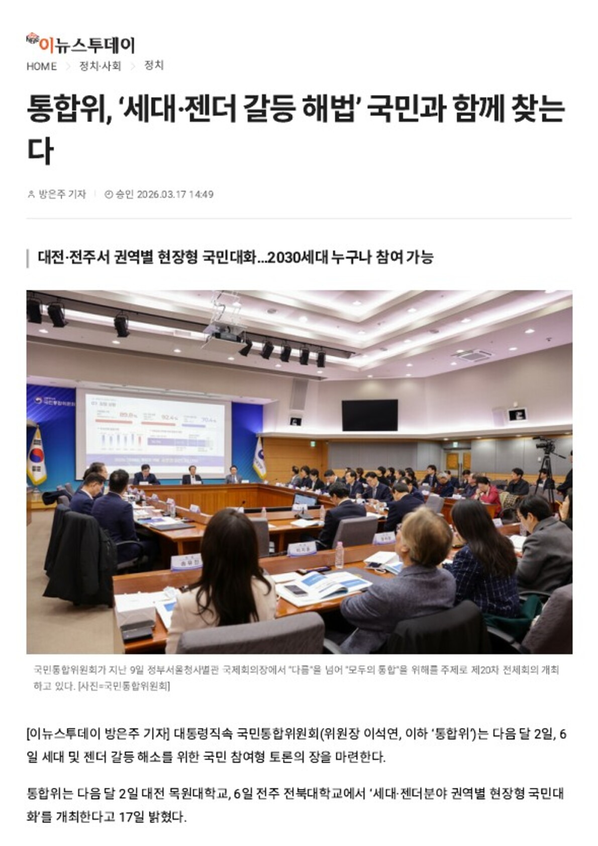 국민통합위원회 ‘세대·젠더분야 권역별 현장형 국민대화’ 개최