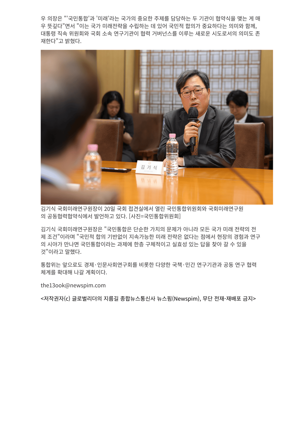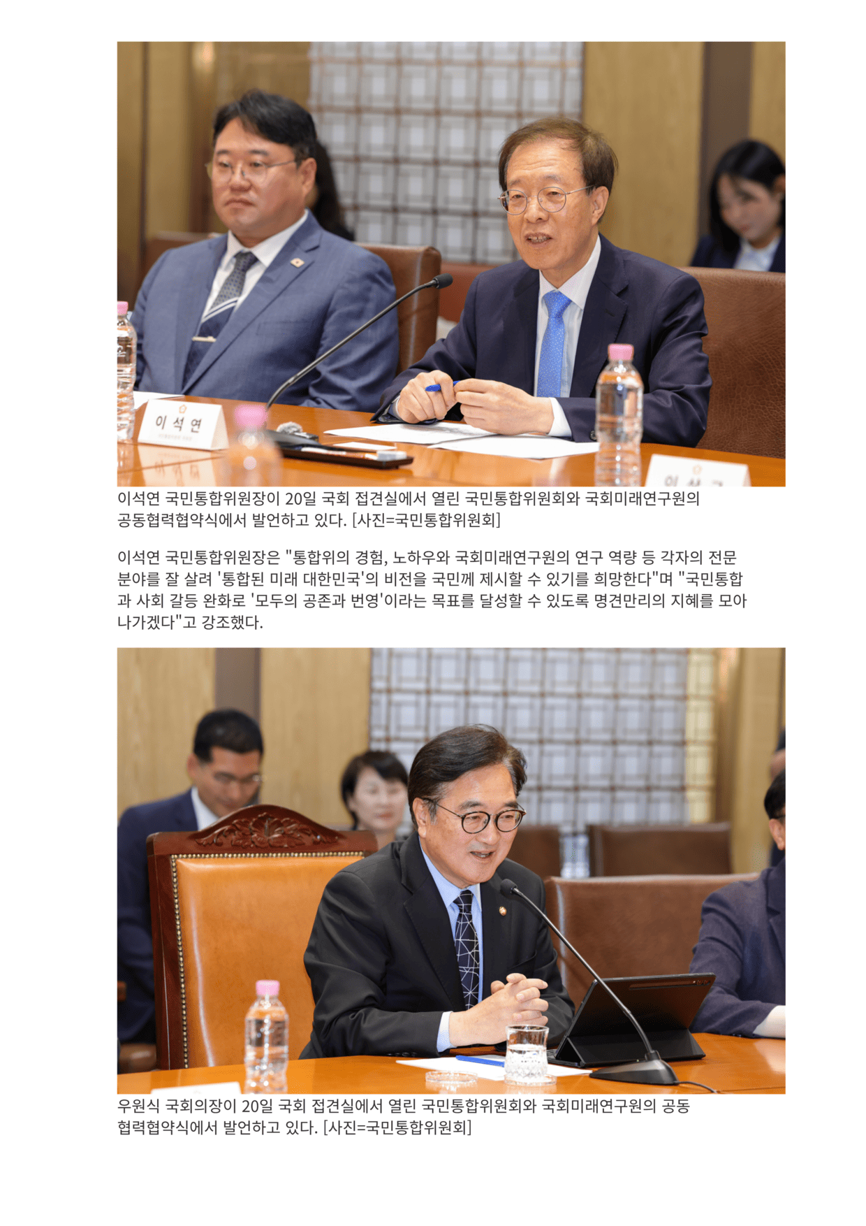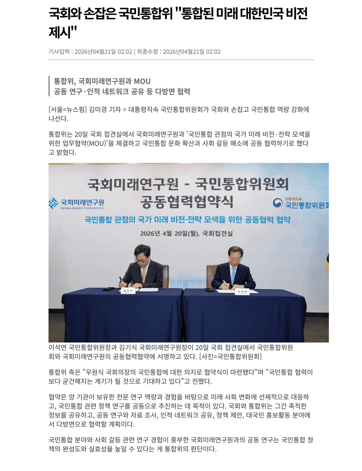 국회와 손잡은 국민통합위 통합된 미래 대한민국 비전 제시